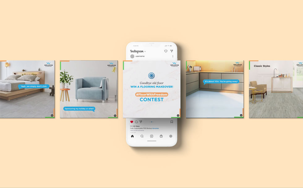 I led the visual direction for Welspun Flooring’s digital campaign, bringing their commitment to innovation and interior elegance to life through engaging Instagram creatives.